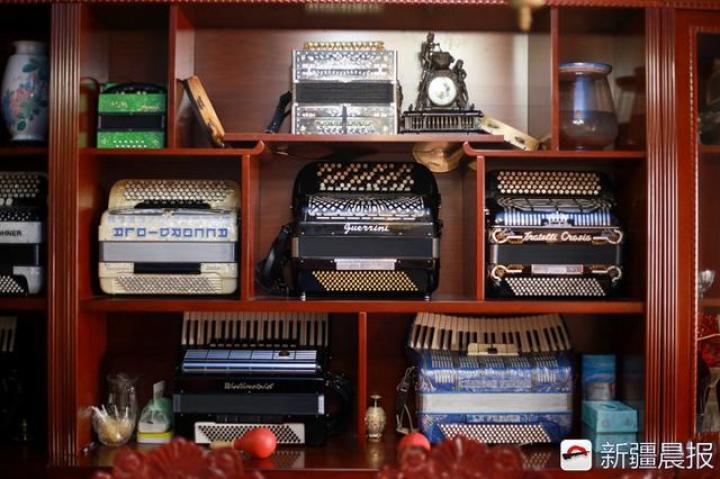 阿克拜尔和他的手风琴收藏品在阿克拜尔收藏的300多架手风琴里,他手里弹奏的这架艺龄并不算最长的,“年纪”最大的有200多年历史,它们大部分来自俄罗斯,小部分是国产,还有的来自法国、德国、意大利等国家,涉及数十个品牌。现在的住所里只摆放着阿克拜尔的部分手风琴,大部分手风琴则放在他位于市郊的另一处住所。