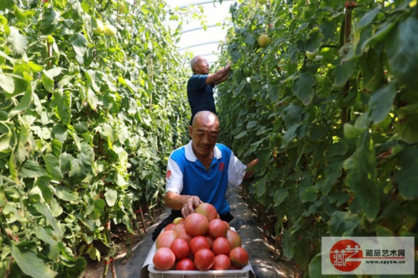 没有“军令状”,没有“豪言壮语”。经过近3年的艰苦奋斗,沙帽台村实现整体脱贫出列后,积极发展设施蔬菜种植这一“铁杆”产业,在稳定原有24个“帽台红”西红柿大棚种植的基础上, 2021年又利用壮大集体经济资金50万元、引进社会帮扶资金59万元,建成春秋棚25个;2022年再利用财政扶贫资金76万元,建成使用面积14亩的春秋蔬菜大棚10个。现在全村共有蔬菜大棚62个,其中春秋棚59个、冬暖棚3个,总占地面积98 亩,实际使用面积 61.3亩。蔬菜大棚基地总投资482.65万元,其中配套资金为135.65万元。这些新建扩建设施蔬菜大棚主要以种植优质西红柿和西芹为主,年产优质西芹200万斤和帽台红牌西红柿100万斤,2023年仅此两项销售收入达到500万元。2024年6月27日这一天中午,刘栋在蔬菜大棚里,面对一排排挂满“帽台红”西红柿果实令人陶醉的丰收景象,对正在这里参观检查工作的牛俊武乡长说,这些年村子产业项目扶贫能够取得这样好的成绩,与县里乡里的正确领导是分不开的。