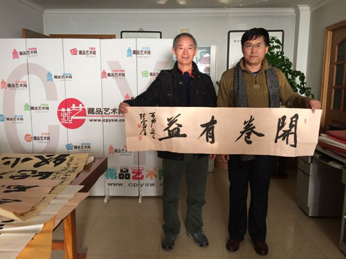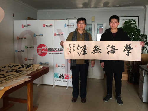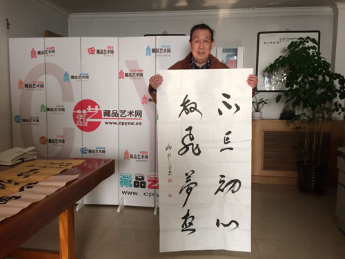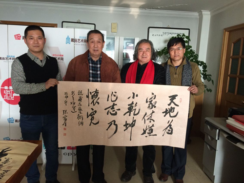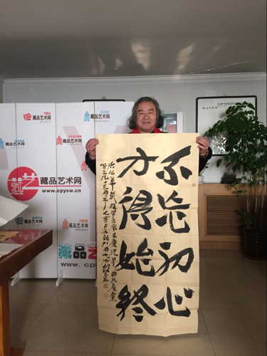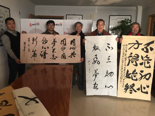活动现场,艺术家们创作出“不忘初心”、“不忘初心 放飞梦想”、“不忘初心 方得始终”、“同心共圆中国梦 不忘初心谱新篇”、“开卷有益”、“学海无涯”等多幅正能量作品。尤其是张富全老师书写的“天地为家休嫌小 乾坤作志乃怀宽”作品,更寄托出艺术家们对藏品艺术网发展前景的美好祝愿。