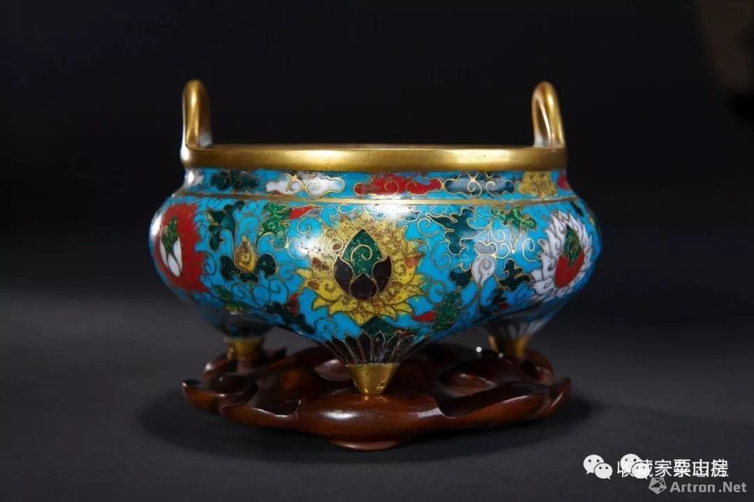 第四,元代和明早期的中国古代铜胎掐丝珐琅,收藏者必须给予重点关注。目前北京故宫馆藏且发表的元代中国铜胎掐丝珐琅器十三件,其中拼装件七件,原汁原味的只有球式薫炉、鼓式炉、冲耳炉和鼎式炉等六件,北京故宫馆藏且发表的明早期铜胎掐丝珐琅四十九件,其中也有不少拼装件,原汁原味的也很少。应该说在民间的元代和明早期的铜胎掐丝珐琅器不多,本斋近十年来我和陆牧滔几乎参与了拍卖中所有元代和明早期铜胎掐丝珐琅器的竞拍,仅得元代铜胎掐丝珐琅器一件,仅得明早期铜胎掐丝珐琅器十多件,所以如果有机会见到这两个时期的铜胎掐丝珐琅器,尽可能不要轻易放弃这种机会。