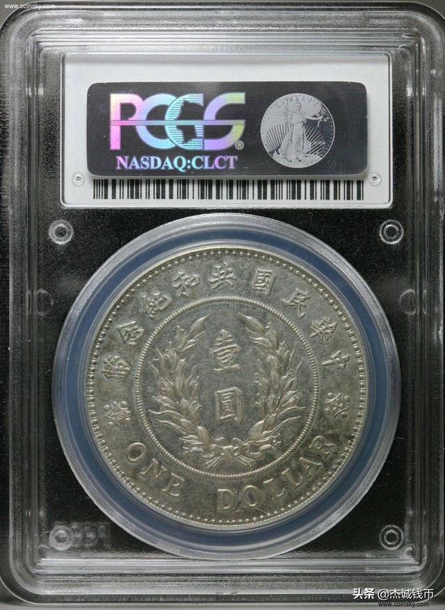 辛亥革命胜利后,1912年2月清朝宣统黄帝宣布自行逊位,北洋军阀袁世凯赞同共和后,根据临时政府的诺言,孙中山辞去 中华民国临时大总统之职。3月袁世凯在北京就任中华民国临时大总统。民国元年(公元1912年),意大利雕刻师乔治受聘于天津造币厂,镌刻模具,由天津造币厂铸造了袁世凯着军装高樱冠正面像中华民国共和纪念银币。民国二年(公元1913年)十月十日,袁世凯正式就任大总统,同时发行此币。版别有光边、齿边等。该币正面镌袁世凯着军装高樱冠正面像。反面珠圈内镌嘉禾图案环;中间竖镌“壹元”2字;珠圈外上环镌“中华民国共和 纪念币”9字;下环镌英文壹元;左右镌各一方形有内四点外四点花饰。