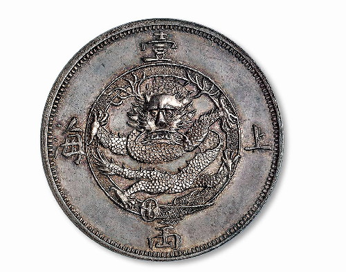 简介:1867年上海壹两“无射线”版银币样币一枚,K-911a/LM-600,香港造币厂试铸,以龙图外圈芒线区分为无射线、有射线二种版式,均未发行,每种版式皆存世寥寥;由于上呈样币最后选定为有射线版,所以无射线版试铸较之更少,存世稀若星凤,列中国近代机制银币十大名珍;此款样币在1954年出版的耿爱德(E.Kann)著《中国币图说汇考》中编号911a,耿氏给出的定价为3000美元,超过“广东寿字壹两”样币的2000美元以及“四川楷书版七钱二分”样币的1500美元;样币以镜面版底精铸,雕刻工谨,打模力道十足,字口锐利,龙图设计别具一格,鳞片立体饱满,层叠有致,通体均匀浅灰色包浆,光泽古润,版底完美无瑕,价值非凡