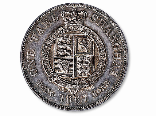 1867年香港造币厂再次修改设计,为了更易被中国政府接受,正面采用象征中国帝王的龙纹图案,并请英国皇家造币厂雕刻师史特(Mr. Sherd)担纲镂模。当时上海是重要新兴港埠,港督误以为采用上海平法有助销量,因此文字使用“上海壹两”。成色可能是错认上海通用的规元含银九八,故将规格定在含银98.2%,其重量则采用相当于漕平一两的566格令(合36.67克)。在考虑平衡对等的原则下,背面镌英王徽中心之盾徽图案,此套样币泉界称之为“上海壹两”。同年5月11日,十一枚样币被送至北京,然而当时清廷对以机器制造银币的任何提案都缺乏兴趣,上海壹两样币未被采纳。港督随即在1868年2月的会议中决定4月25日关厂,最后整厂卖给日本,成立了大阪造币局。