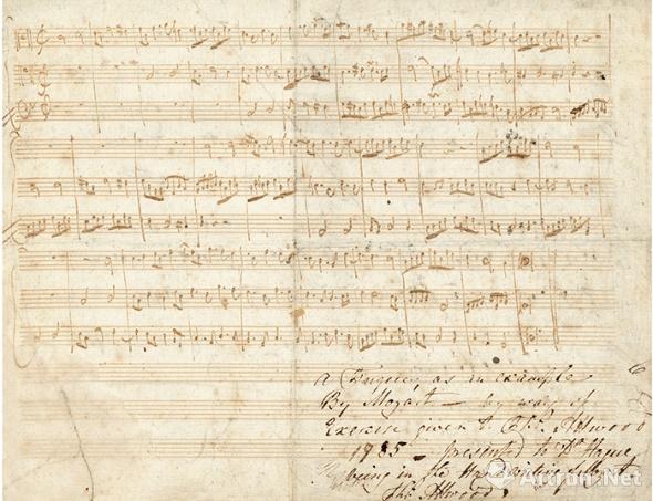 莫扎特为学生作《c小调赋格曲(作品号506a)》珍贵原稿