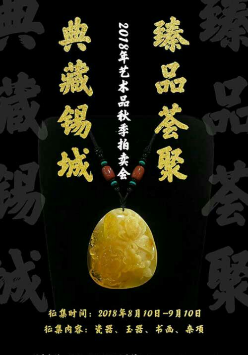 凤凰网江苏·无锡频道携手金远见(北京)国际拍卖有限公司、北京中塑文化艺术有限公司江苏分公司、北京远航方舟教育文化交流有限公司无锡艺术品分公司将于2018年9月23日举办“臻品荟聚典藏锡城暨2018秋季艺术品拍卖会”活动。
