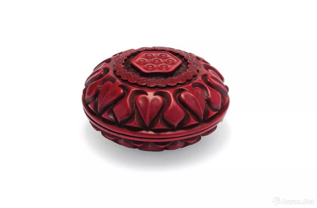 拍品编号1227 明十五世纪早期 剔红莲纹圆盖盒 直径 7.9 cm.