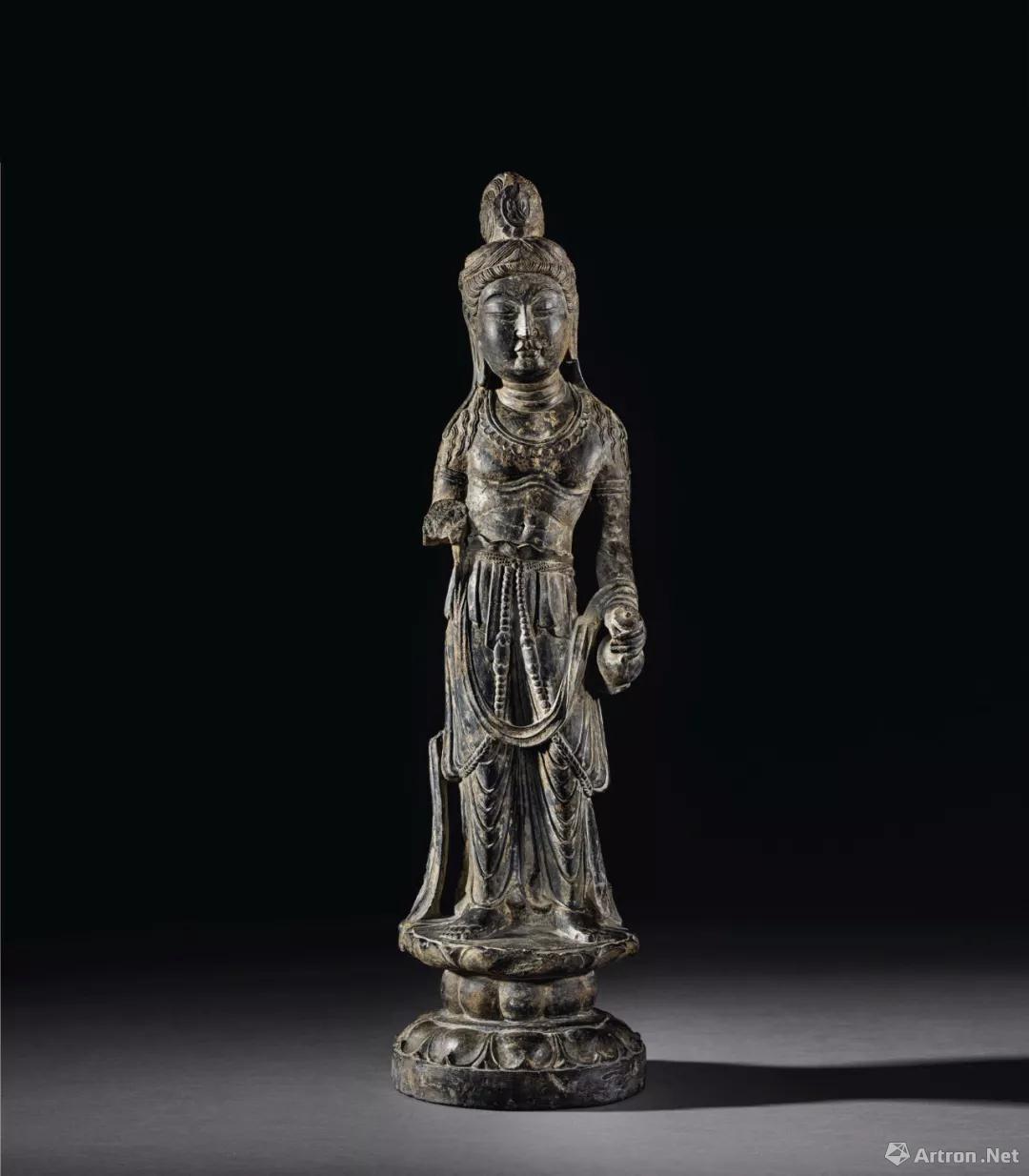 拍品编号1124 盛唐 石灰岩雕观音菩萨立像 高 67 cm.