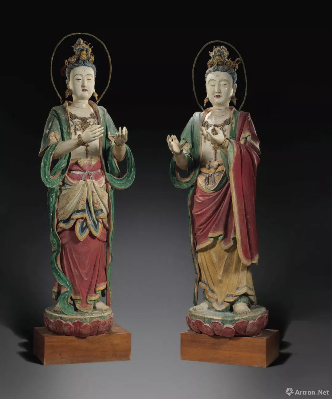 拍品编号1128 元/明 彩塑菩萨立像一对 高 216 cm.