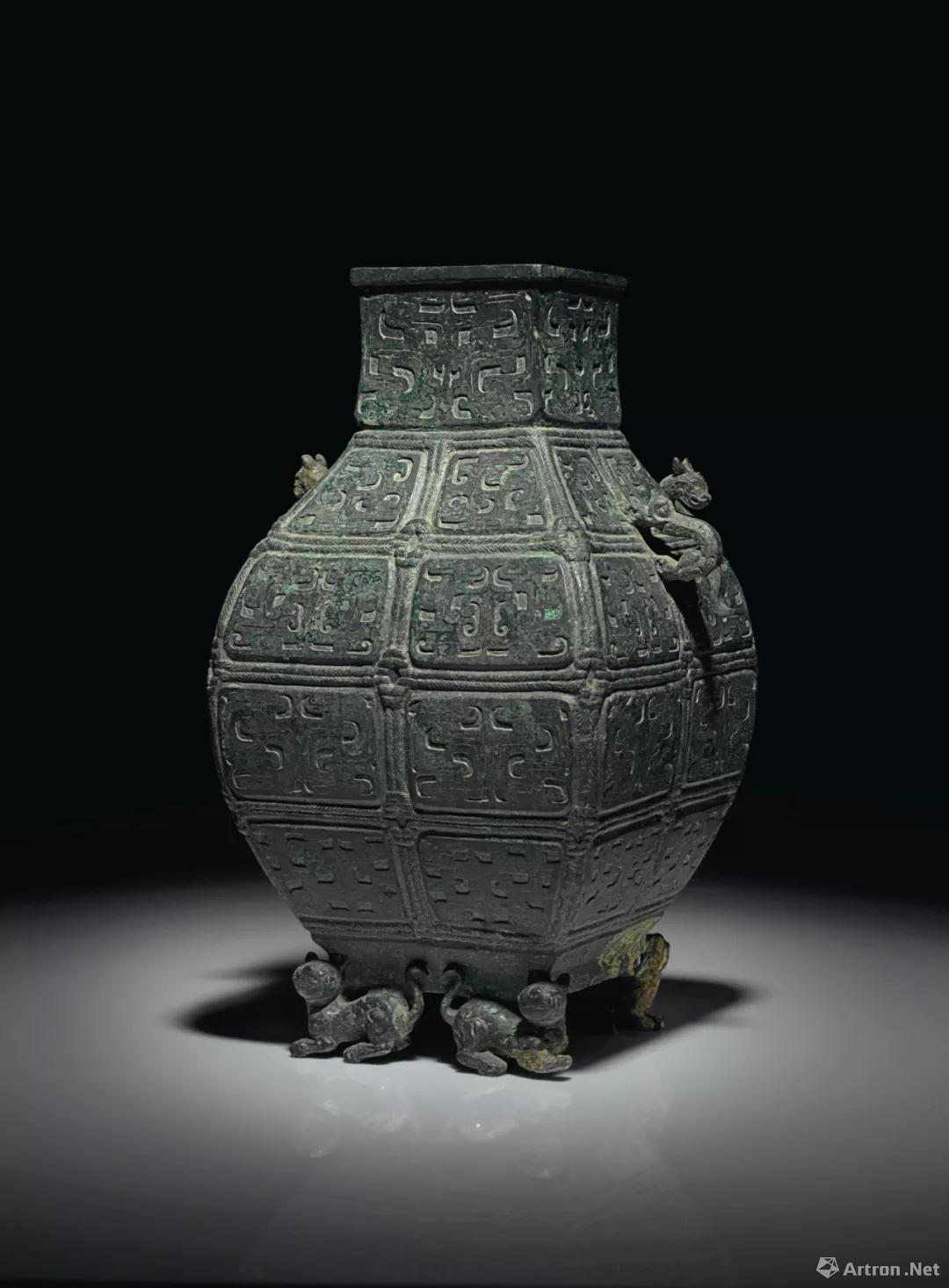 拍品编号1115 战国早期 青铜几何纹虎足方壶 高 35.6 cm.