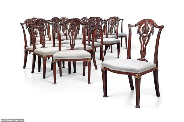 藏品中还有一套19把乔治二世时期的桃花心木餐椅,制作于1775年前后。这些餐椅拍卖赚得10万英镑(93万人民币)。