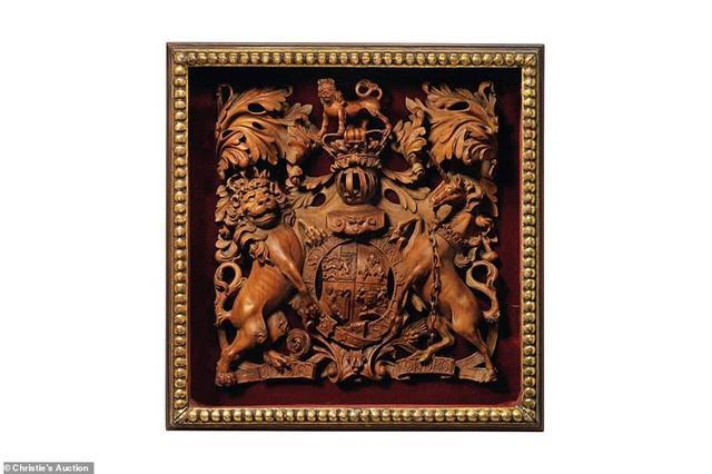 这个雕刻品是为乔治三世国王制作的,后来被玛丽女王(1867-1953)得到,并送给了她唯一的女儿玛丽公主,也就是哈伍德伯爵夫人,这件盾形纹章雕刻价值3.25万英镑(30.2万人民币)。