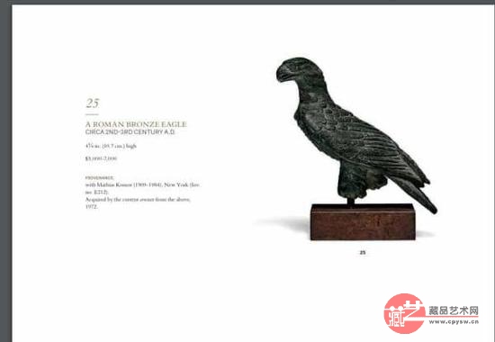 佳士得拍卖图录上,25号拍品约公元2世纪至3世纪的青铜鹰。
