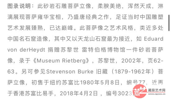 苏富比图录中对“砂岩石雕菩萨像”的介绍。