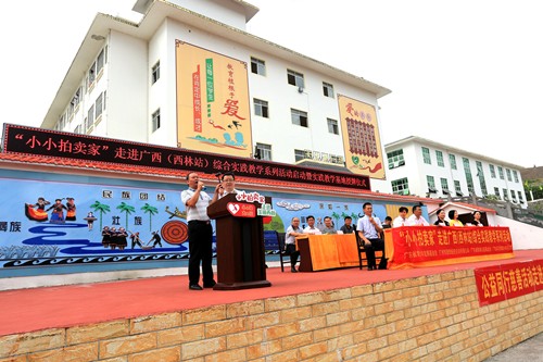 7月9日上午,“小小拍卖家”走进广西(西林站)综合实践教学系列活动启动暨实践教学基地授牌仪式在西林实验小学举行,西林县政协主席李正荣、县委宣传部长韦荣黎、县人大常委会副主任廖晨伊等县领导出席。该活动由广东省青少年发展基金会、广州讪超悦投资咨询有限公司、广东省慈泉公益基金会和广东华友拍卖行有限公司等组织开展“公益同行慈善活动走进广西(西林站)”,为培养学生未来的综合实践能力和公益慈善意识奠定基础。九时许,李正荣宣布系列活动启动。口罗世金 图/文