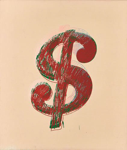 安迪。沃荷(美国人, 1928-1987年) 《美元符号》 人造凝胶 丝网墨 画布 40 x 33.5 公分,1981年作 估价:港元2,000,000 - 2,500,000/美元256,400 - 320,500