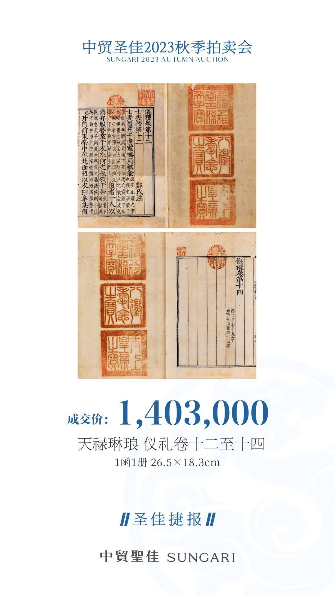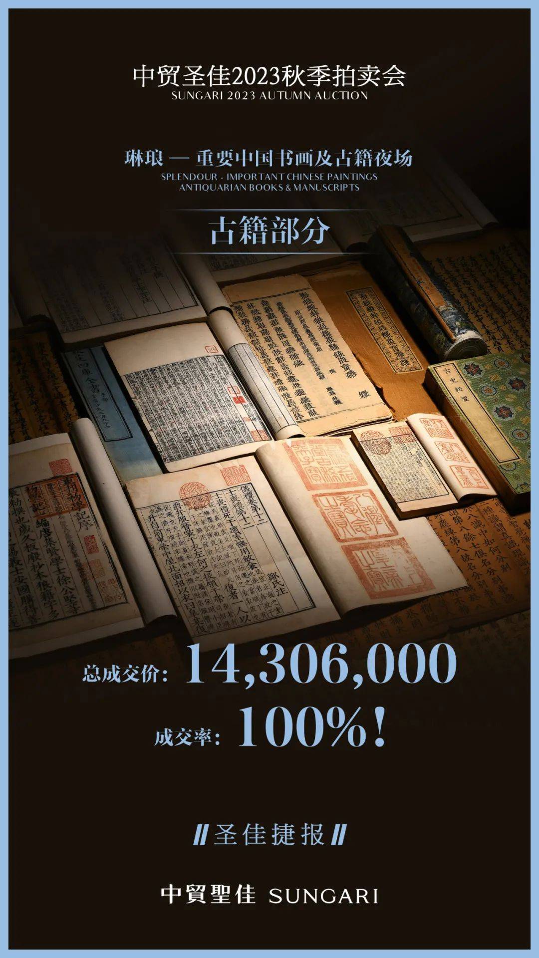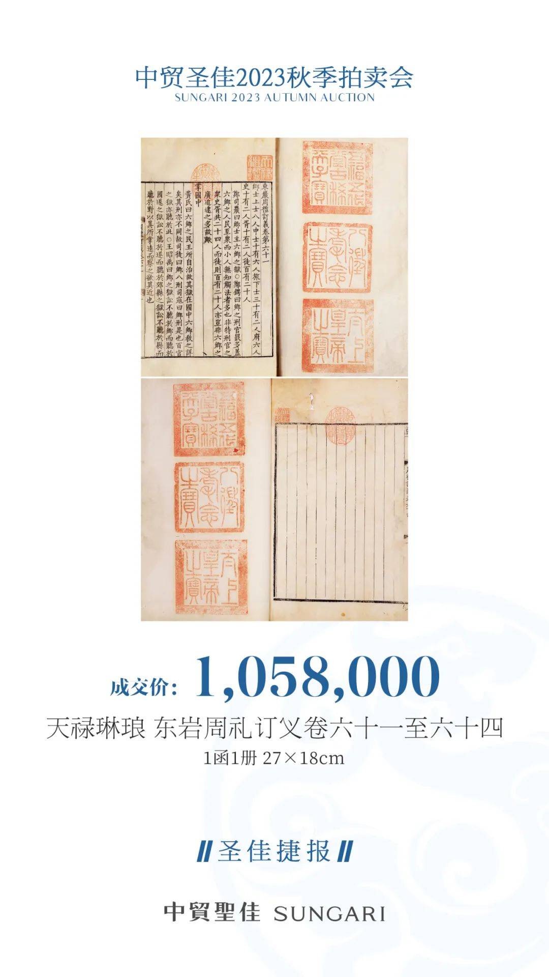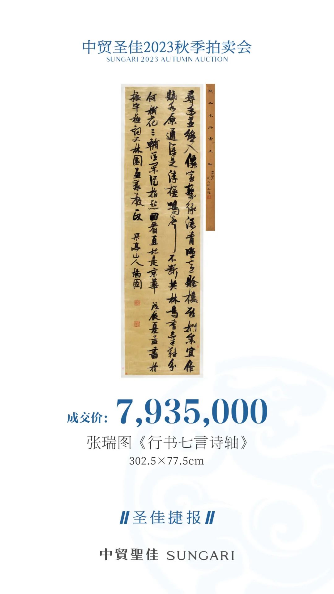 备受瞩目的"琳琅夜场"表现不俗,Lot662-Lot671点怀云楼专题,与古籍部分均为100%成交。张瑞图《行书七言诗轴》以7,935,000元成交,位列本日榜首。