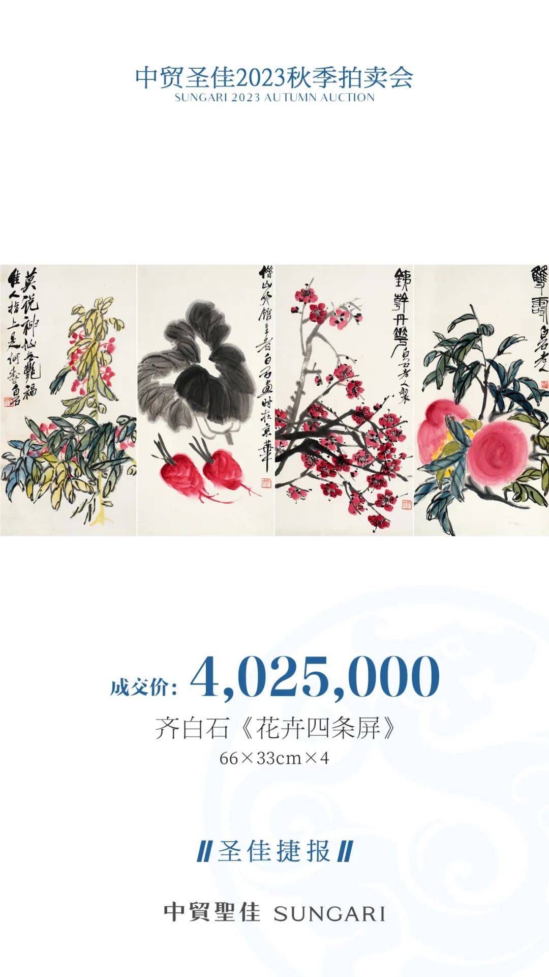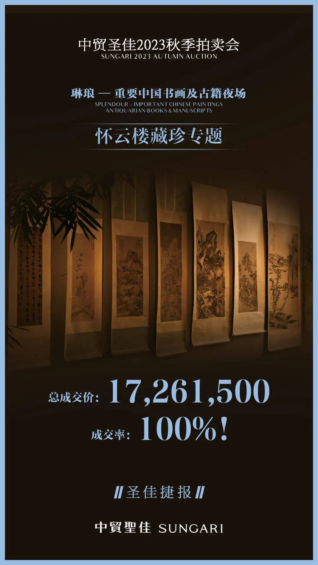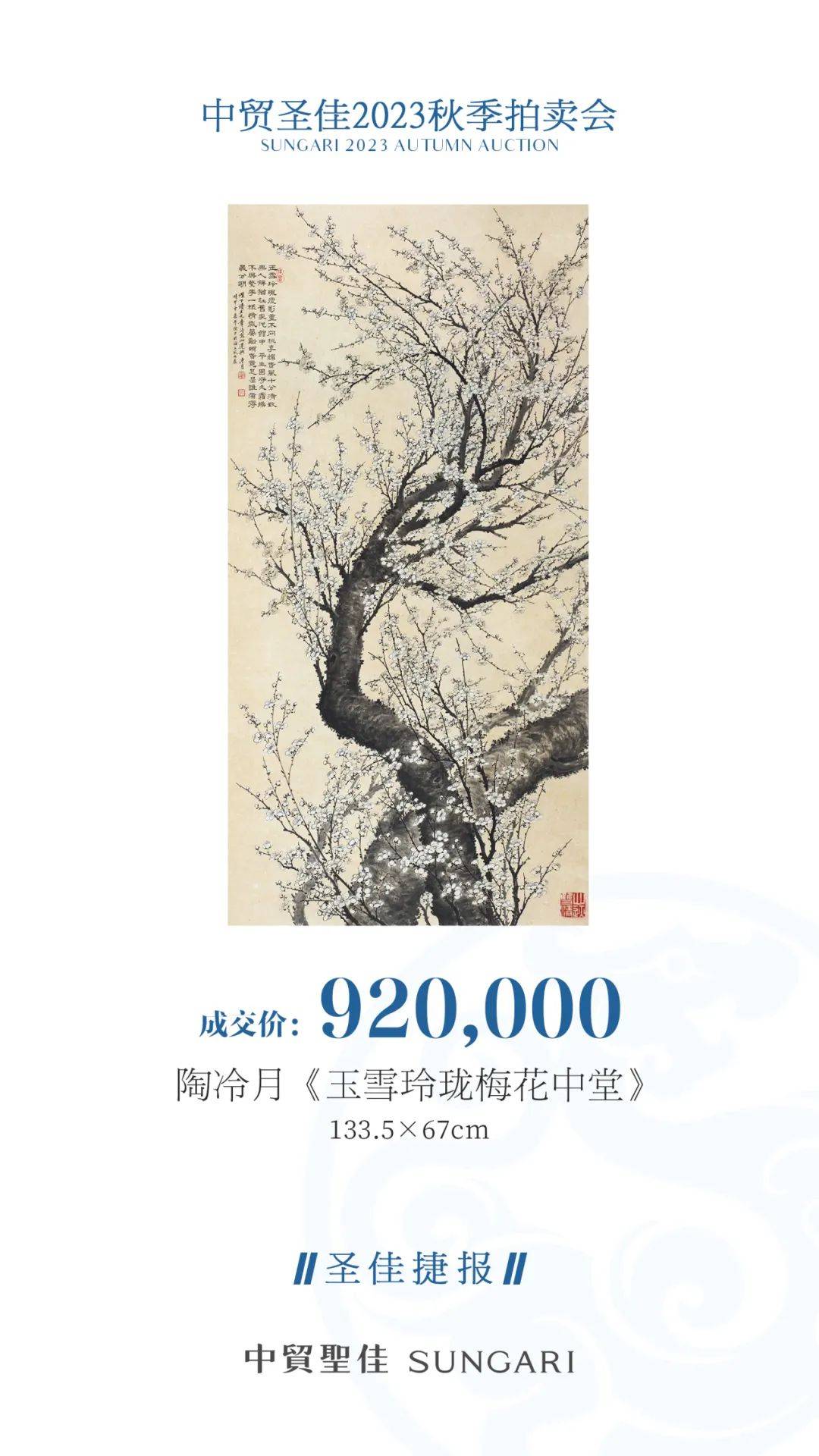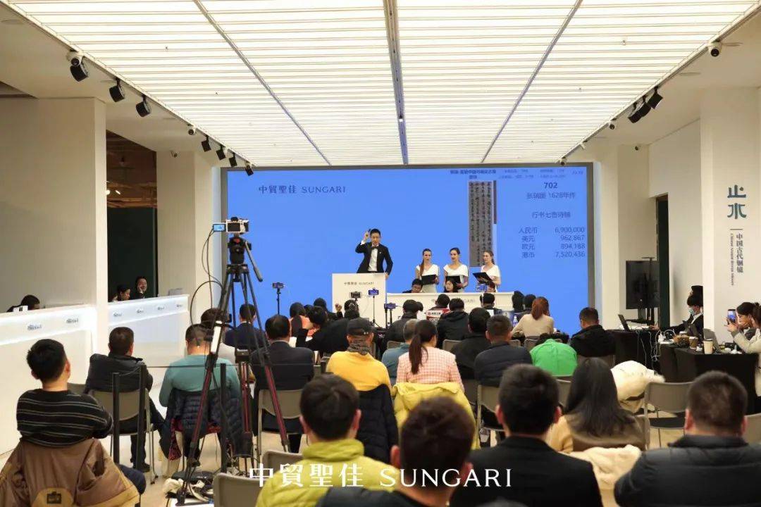 初雪落,槌音响。中贸圣佳2023秋季拍卖会12月11日10时许于圣佳艺术中心举槌。虽初雪寒冷,但场内热情不减,现场买家云集,人气爆棚,当日呈现的近现代书画、古代书画及“琳琅—重要书画及古籍夜场”3个专场,首日斩获220,267,550元成交额,不负初雪不负卿!