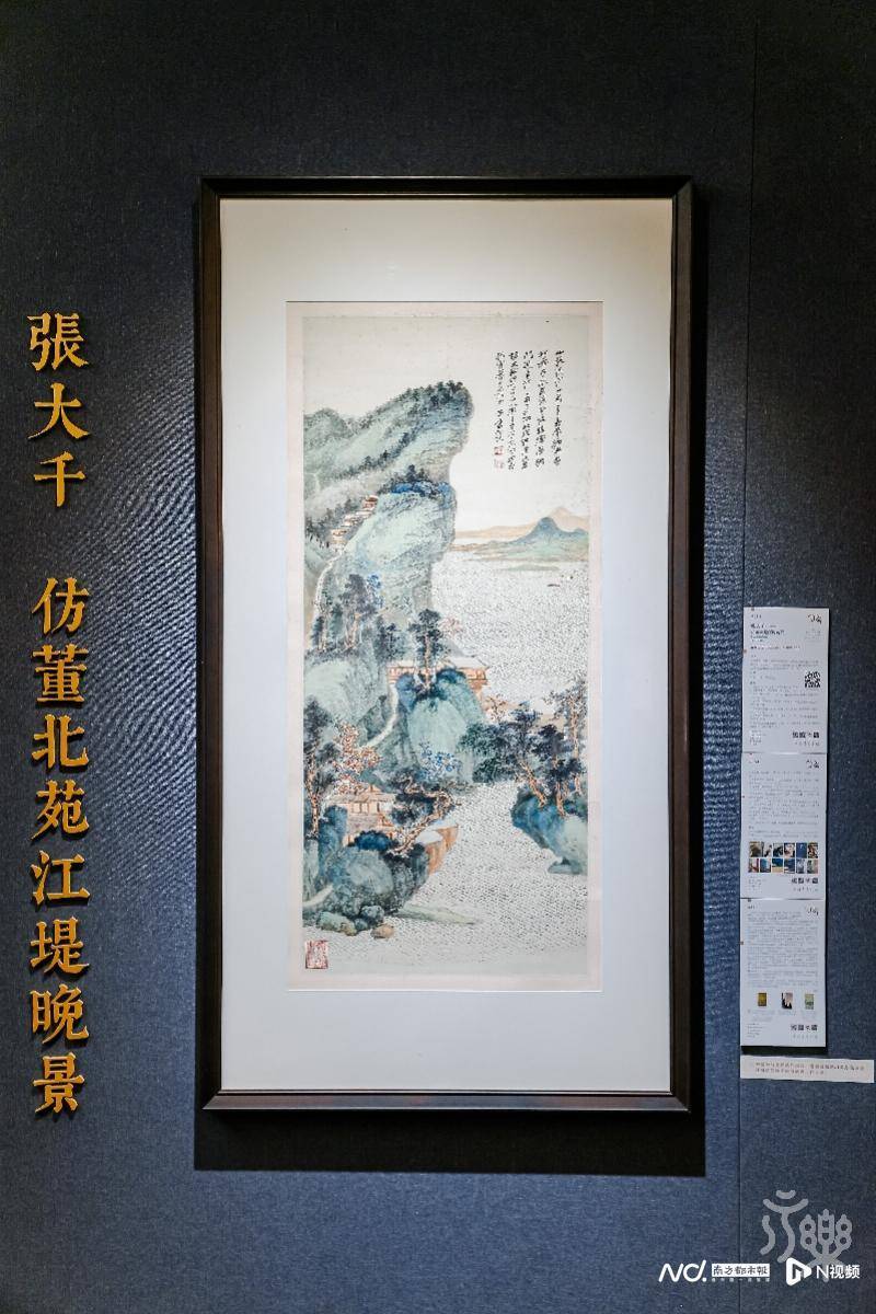 和许多画家一样,张大千也同样经历了描摹之路。他师古人、师近人、师万物、师造化,最后达到“师心”的境界。《仿董北苑江堤晚景》则是在1947年十月间所仿,行笔如流水,水石幽深,平远险易之行,莫不曲尽其妙。