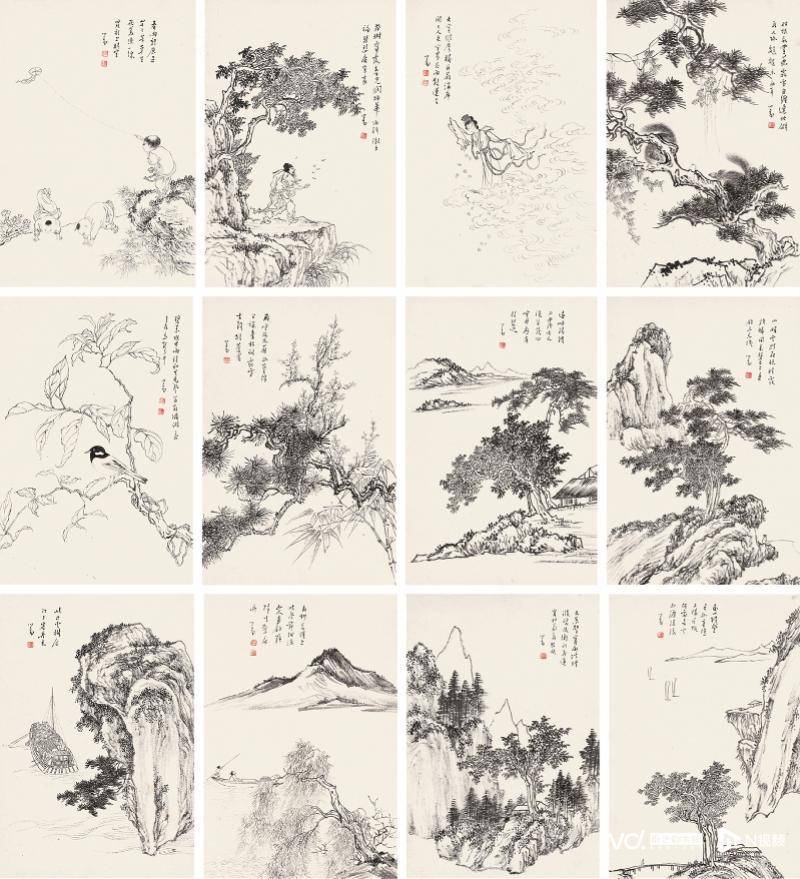 溥儒(1896-1963) 杂画集锦册 册页 水墨纸本 31×21cm×12,约0.6平尺(每幅)