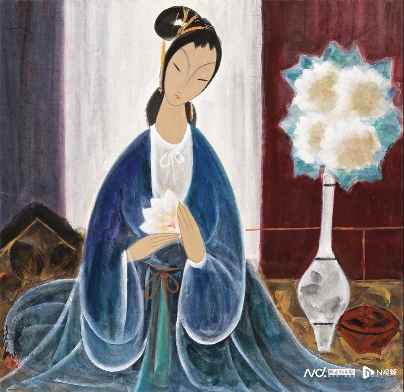 林风眠(1900-1991) 执花仕女 镜心 设色纸本 66×68cm,约4.0平尺