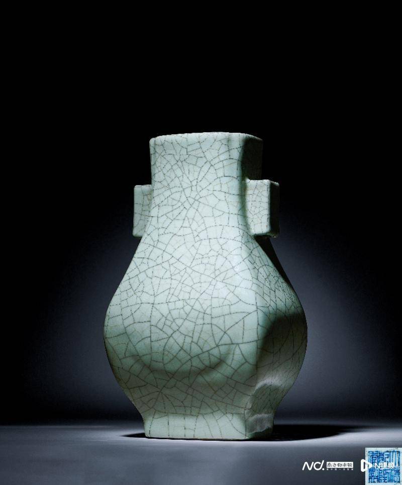 清代帝王心仪宋瓷的古雅气息,多次命景德镇御窑厂以宋瓷为范本制瓷,唐英任职督陶官时期,锐意探索,最终成功烧制了各类仿古瓷器,尤其以乾隆早中期所制最为成功。本件贯耳瓶造型最早出现于宋代,其器形制为仿青铜器投壶造型。自乾隆烧造以来,一直流行至晚清。本件贯耳瓶颇具宋哥釉“金丝铁线”质感,令人心旷神怡。釉色泽淡恬幽静,釉面莹洁温润,器型敦厚古朴,配以错落有致开片,穆穆之中透出高贵浑雅之气,以诠释宋人崇尚一色纯净之美学理念。