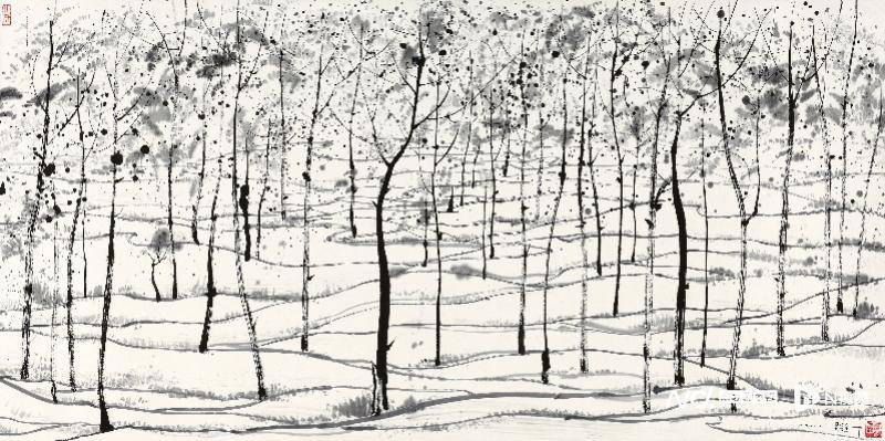 吴冠中(1919-2010) 新林 1988年作 镜心 水墨纸本 68×137cm,约8.4平尺