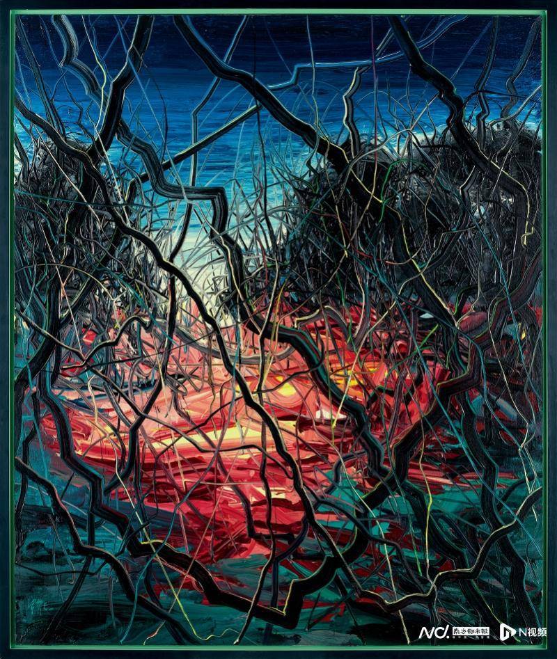 曾梵志的《无题》是其“乱笔”系列的升华之作,此作虽然在布局形制上同出一辙,但色彩更加亮丽,明暗对比度更强,情绪氛围也较之早期更为明朗。