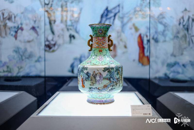 乾隆御窑领衔拍品为清乾隆 御制绿地轧道洋彩通景“十八罗汉”图双耳撇口瓶,该器虽经岁月流转不具款识,但工艺精湛绝伦,外壁以多重釉彩绘饰,腹部通景式绘十八罗汉图,结合现存李公麟绘《十六应真图》,以及冷枚等宫廷画师所绘罗汉,其形象及衣纹于本品中皆有所摹,而内廷粉本画画人临仿古画的同时,也以仿古为本,结合图式创新,故于此瓶之上可见摹古所绘十八罗汉尊者,又以西洋画法中的明暗对比描绘人物面部及衣纹,绘画细致工整,诸彩绚丽浓妍,观之浓郁的宫廷气息扑面而来,诚为乾隆早年御窑推陈出新力作。