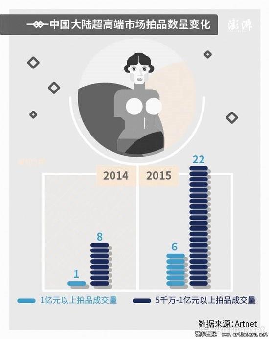 虽然2015年国内经济收到全球经济影响出现波动,但中国资本大佬逆势增加,中国艺术品超高端市场(单件超过5000万人民币)当然不用担心“有价无市“。