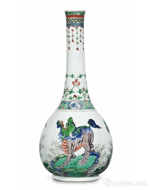 清康熙 五彩瑞兽纹大长颈瓶 成交价:341,000美元 大都会珍藏专场