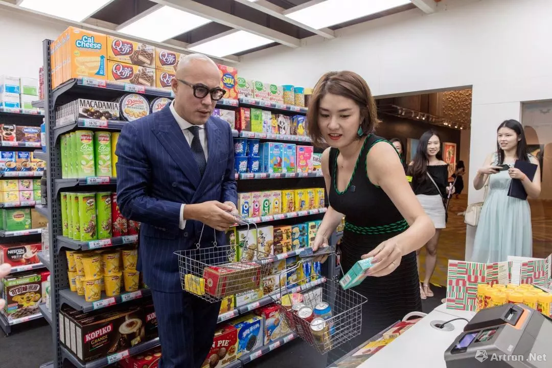 苏富比亚洲区主席仇国仕与苏富比亚洲区当代艺术部主管寺濑由纪在《徐震超市》选购商品,图片来源:徐震®