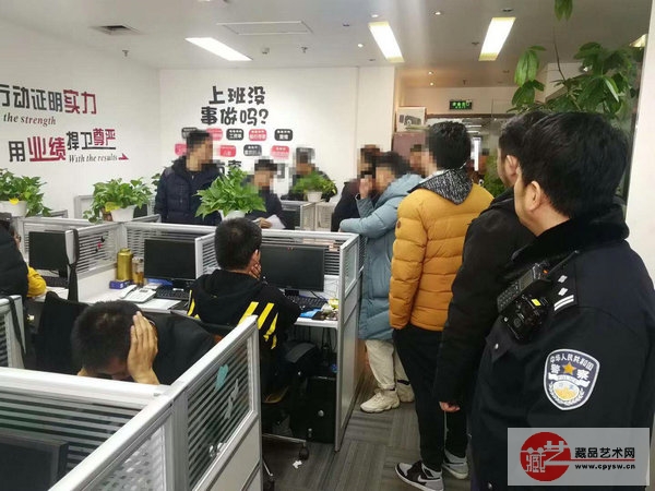 2月19日上午10点,海淀刑侦支队和羊坊店派出所集结30余名警力迅速出击,在朝阳某写字楼内一举将这个诈骗团伙的十多名成员控制。在公司内,民警起获了大量的电话名单、诈骗话术、拍卖会手册、百余份合同等涉案物品,每份合同标的费的金额都是三、五万不等。同时,为了能让事主相信公司的能力,该公司还特意建立了一个展示厅,展示了大量物品与展板,并且在墙上贴着“用行动证明实力,用业绩捍卫尊严”等团队口号,并挂着业绩单,展示每个人的成果。