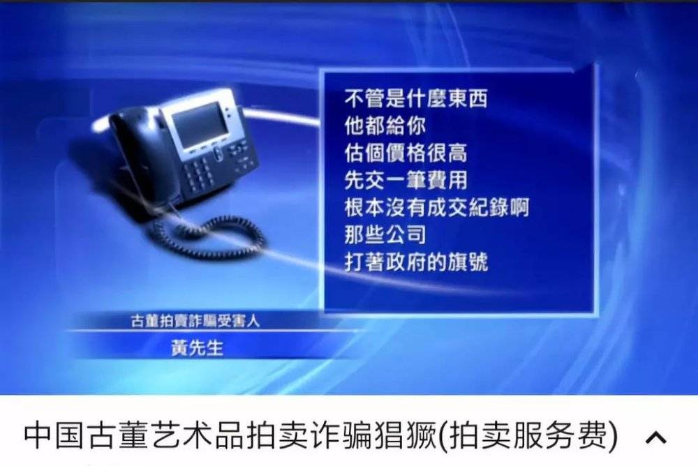先来看一个例子:《焦点访谈》曾曝光过某拍卖公司以根本就不存在的香港拍卖会为诱饵,骗走了一名武汉老人的巨额服务费。