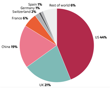 演讲重点介绍了2018年全球艺术品市场的发展现状,2018年全球销售总额为674亿美元,同比增长6%,全球艺术市场平稳发展。其中,美国、英国、中国市场最为活跃,占全球市场份额的84%。中国自2006年取代法国成为全球第三大艺术品市场以来,一直在全球艺术品市场中名列前三,并且成为亚洲最大的艺术品市场。2018年中国市场总额为129亿美元,同比下降3%。