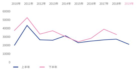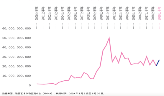 数据来源:雅昌艺术市场监测中心《中国艺术品拍卖市场调查报告(2019上半年)》