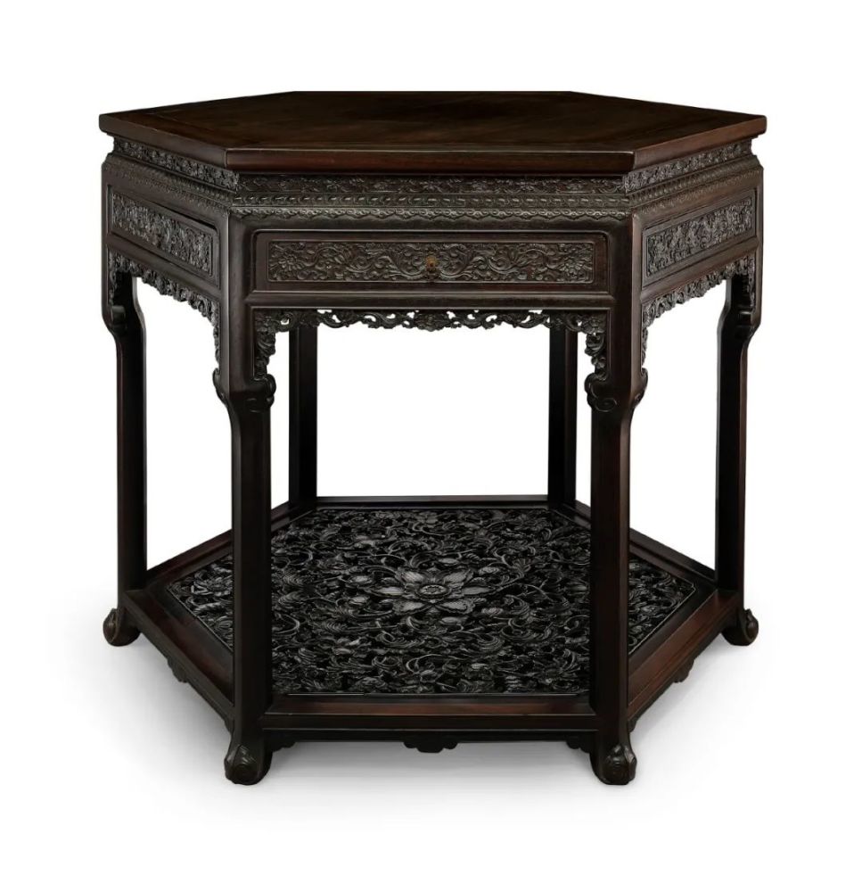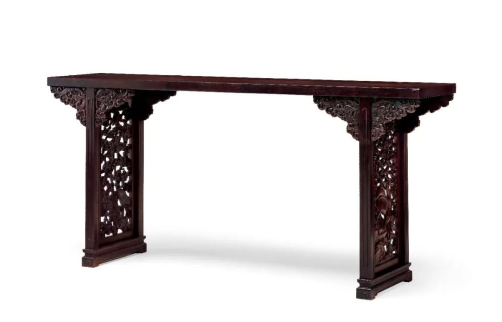 古代家具中,同样不乏千万级拍品。在嘉德2020秋拍中,明末清初紫檀有束腰马蹄足四柱灯笼锦围子架子床以2070万元成交;清乾隆紫檀夹头榫鹤鹿同春平头案以1725万元成交;北京保利2020秋拍中,清康熙黄花梨雕螭龙螭凤捧寿纹双闷仓大四件柜(成对)以2070万元成交;香港佳士得清乾隆紫檀西蕃莲纹展腿式六方桌,以2065万港币成交。