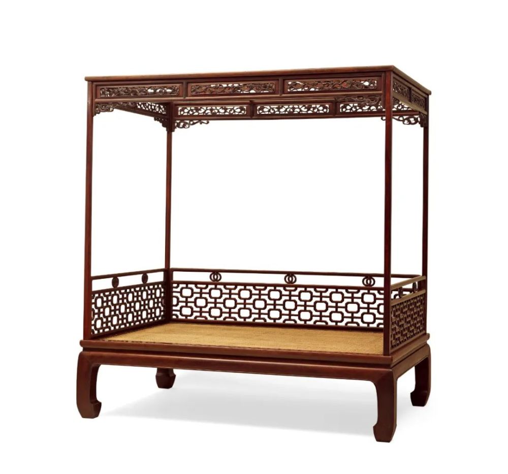 紫檀有束腰马蹄足四柱灯笼锦围子架子床