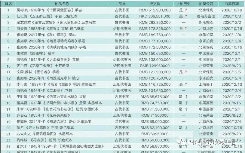 图|2020年书画艺术品高价拍品,图源雅昌艺术网