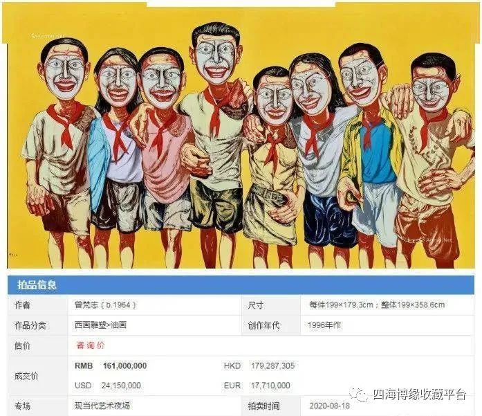 例如,曾梵志的《面具系列1996 NO.6》以1.61亿元的成交价创下了艺术家个人拍卖纪录和中国当代艺术品最高拍卖价格的两个纪录。