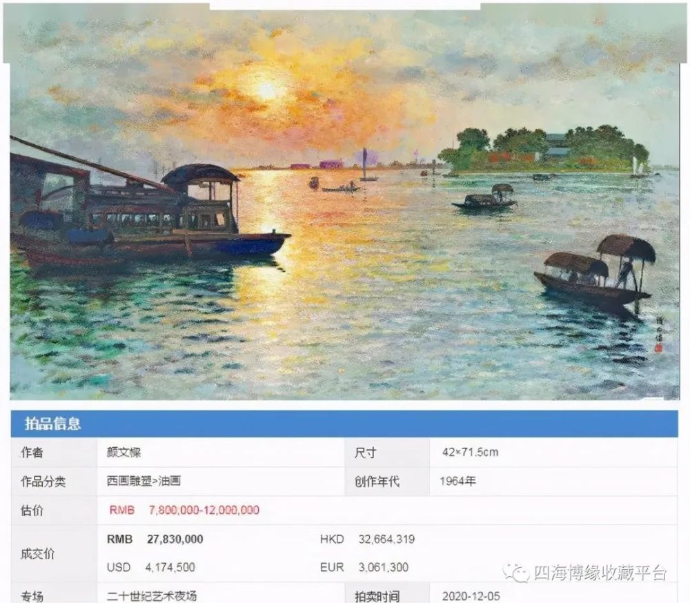 图|颜文樑《南湖旭日》成交价为2783万元,数据源于雅昌艺术网