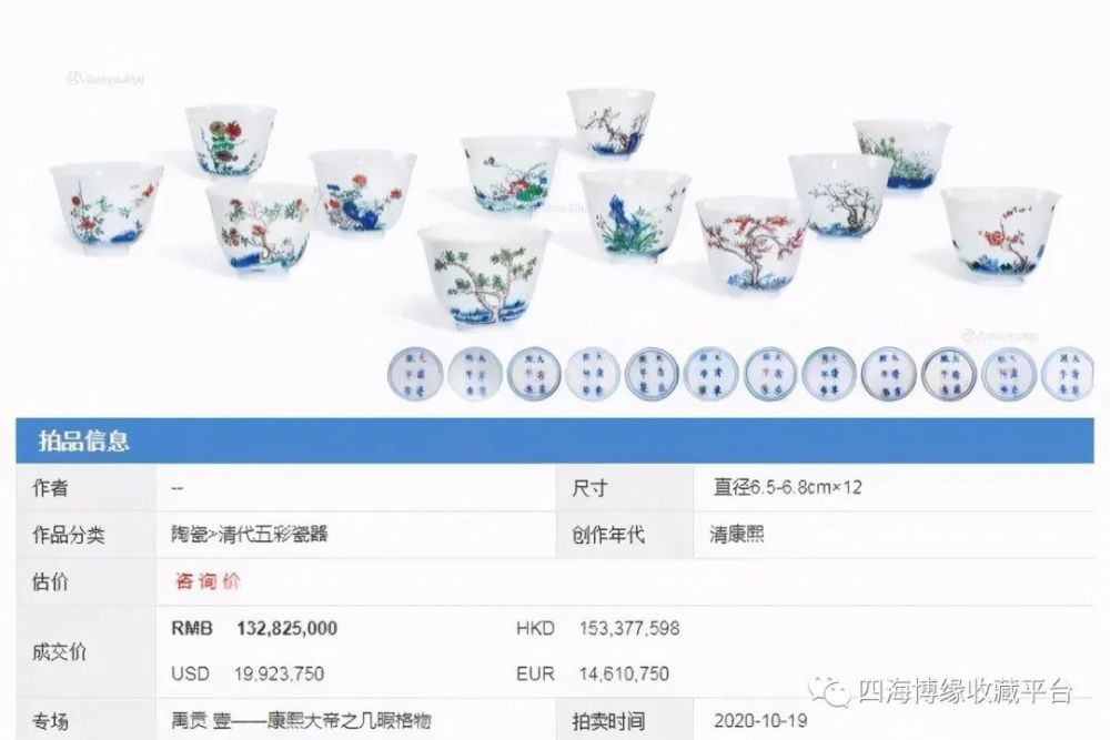 但亿元级别拍品缺失是本年度瓷器拍卖市场的突出表现,仅北京保利拍卖的一套十二月花神杯以1.32亿余元成交。