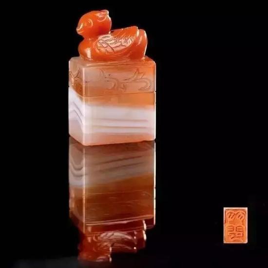 清乾隆 缠丝南红玛瑙朱雀钮‘丛云’