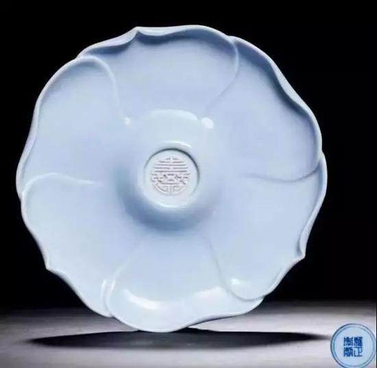 清雍正天蓝釉团寿心莲花式盏托在2010年出现在香港佳士得以314万港元成交,