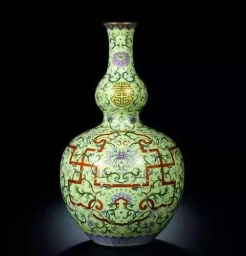 戴福保旧藏的清乾隆浅黄地洋彩锦上添花“万寿连延”图长颈葫芦瓶,1971年他花1680英镑购入,