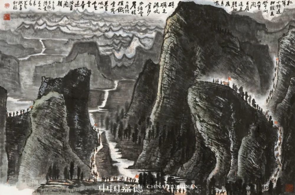 中国嘉德2021春季拍卖会将于5月18日至22日在嘉德艺术中心举行。本季春拍,中国嘉德“大观之夜”格外引人注目。其中,以李可染史诗巨制《长征》领衔。此幅为李可染1959年为庆祝建国十周年所创作,以毛主席诗意入画,极为珍罕。行内人士将此作与《万山红遍》相提并论,破亿不成问题。