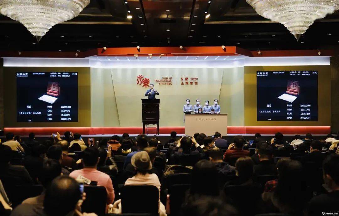 由原北京保利拍卖赵旭创办的永乐拍卖,在2020年度完成了两场拍卖会,取得超过33亿元的成交总额;南方老牌拍卖行华艺国际2020年度并未在广州大本营和香港举办拍卖会,但挥师北上,春秋两拍斩获近28亿元。另外一家著名企业家俞敏洪、拍卖人方政和南京十竹斋集团等联合创办的北京十竹斋拍卖年度一场拍卖会取得5.021亿元的成交额。