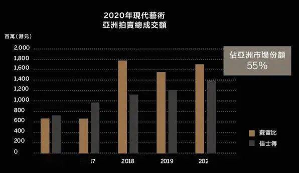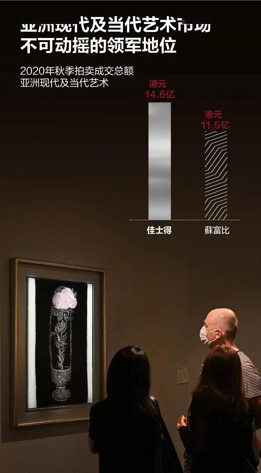 苏富比2020年逾380场网上拍卖取得5.75亿美元的总成交额,其中超40%竞投者及买家为苏富比新客户,40岁以下之年轻买家人数较去年翻一倍。