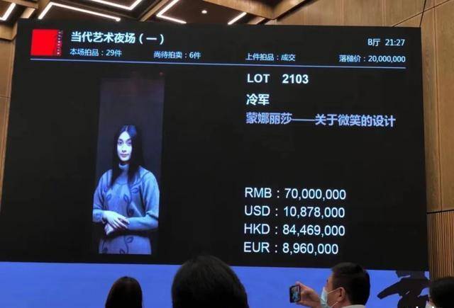 2005年,这幅作品以70万元的价格被收藏家唐炬买下,成为了他的私人珍藏。然而,这幅作品真正的辉煌是在2021年嘉德春拍的当代艺术夜场中到达的巅峰。经过16年的岁月沉淀,《蒙娜丽莎—关于微笑的设计》以8050万元的天价成交,一举成为艺术市场的焦点。这笔交易不仅让唐炬的慧眼成为了佳话,也让冷军的艺术价值得到了更高的确认。尽管这幅画初期仅以70万元成交,但唐炬凭借自己独到的眼光,意识到它的真正价值,最终成为了这幅画的珍贵收藏者。而冷军也坦言,对于这幅作品的最终成交价,他并不后悔,因为他相信,艺术的价值早已得到了体现。