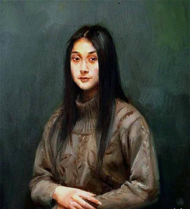 在创作这幅作品时,冷军通过不断的草图修改,将蒙娜丽莎的经典微笑重新诠释并注入到自己画中的女性形象上。观看这幅画作时,整体来看,女子似乎并未微笑,然而,当我们聚焦她的眼睛时,那个微妙的笑意却清晰地浮现出来。这种细腻的设计,让观者陷入深思,让我们对微笑这一情感的理解更加丰富与复杂。