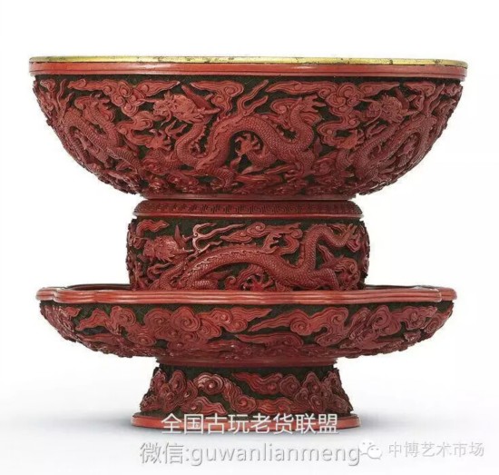 乾隆剔红云龙纹碗连盏托一套(100-150W)